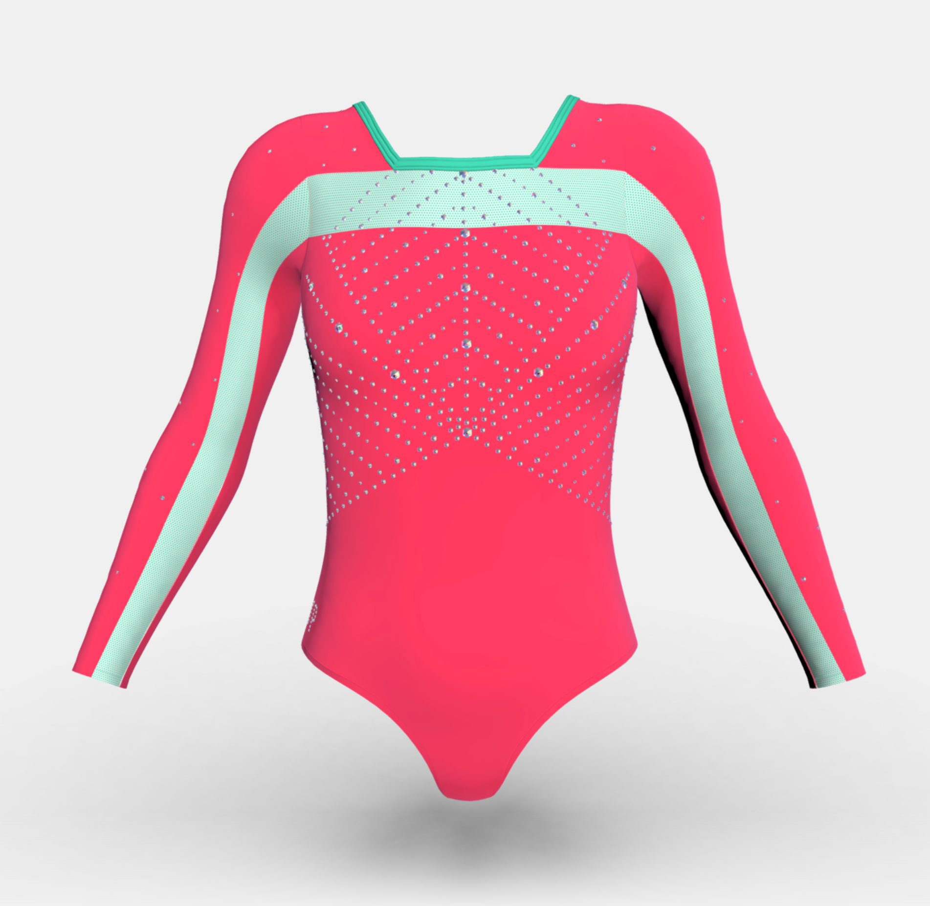 Change the fabrics, colours and crystals of this leotard using StudioSP, our 3D product designer.