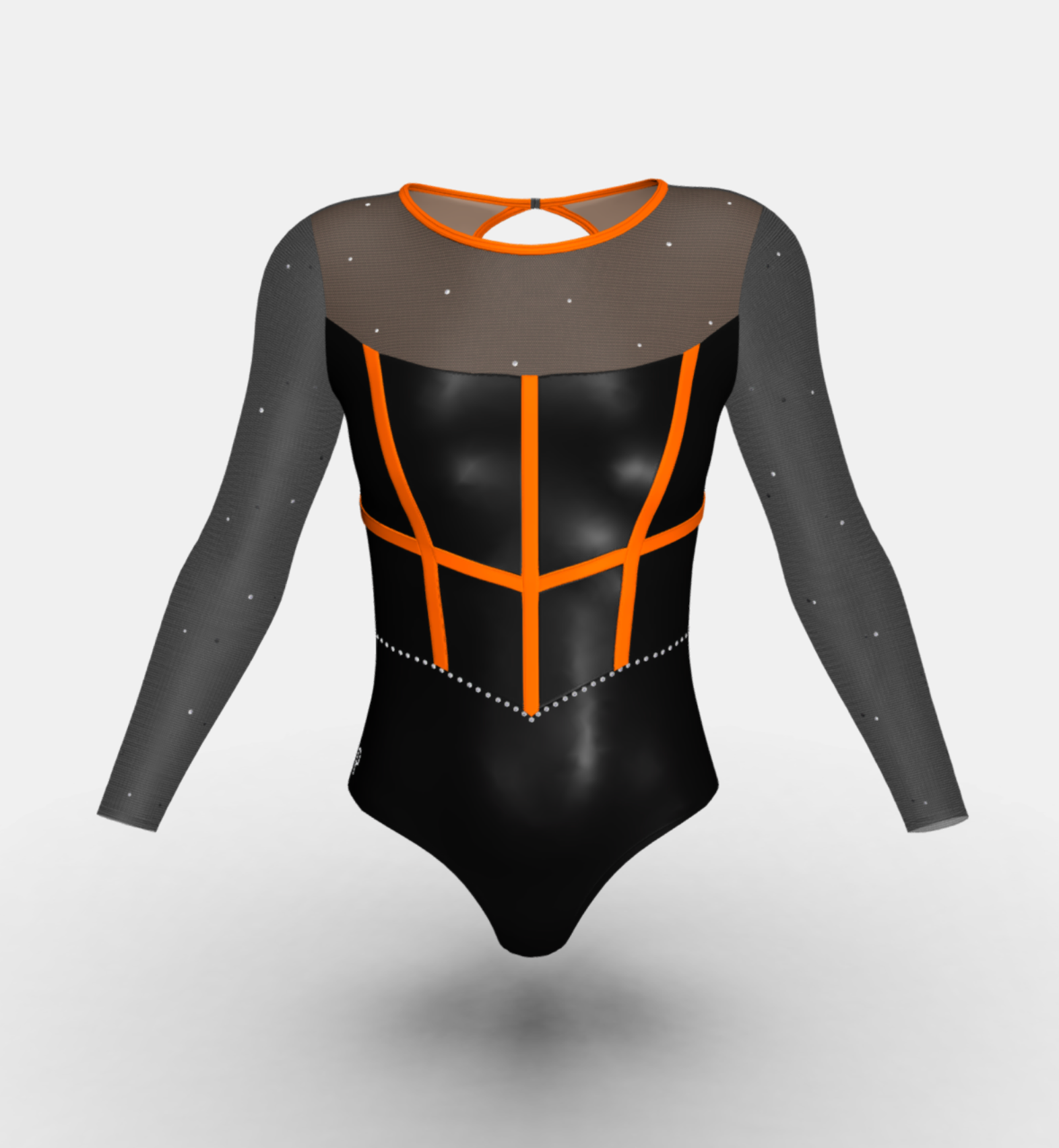Mystify the floor in the Mika design. Featuring the on-trend, corset-inspired metallic mystique embellishment for a bold, yet feminine style statement. Crafted in a scooped neckline with a clasp & keyhole at the back for ease of movement, the V-shaped panel line accentuates the waistline for a touch of magic. Crystals wrap around the waist line & sparkle with a scatter of crystals across the sleeves & chest panels. Cut from a combination of our matt lycra upper that is soft yet durable and mystique embellishments, wet look lycra lower, with mesh sleeves & panels. The front of this leotard is fully lined for complete athlete comfort with upper mesh body panels fully lined with skin lining for zero transparency.