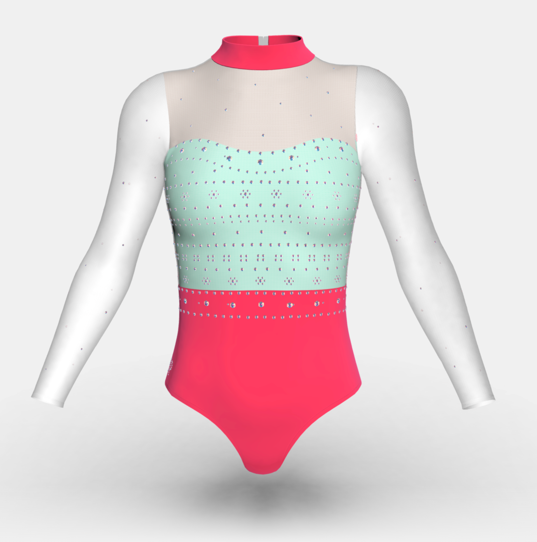 Change the fabrics, colours and crystals of this leotard using StudioSP, our 3D product designer.
