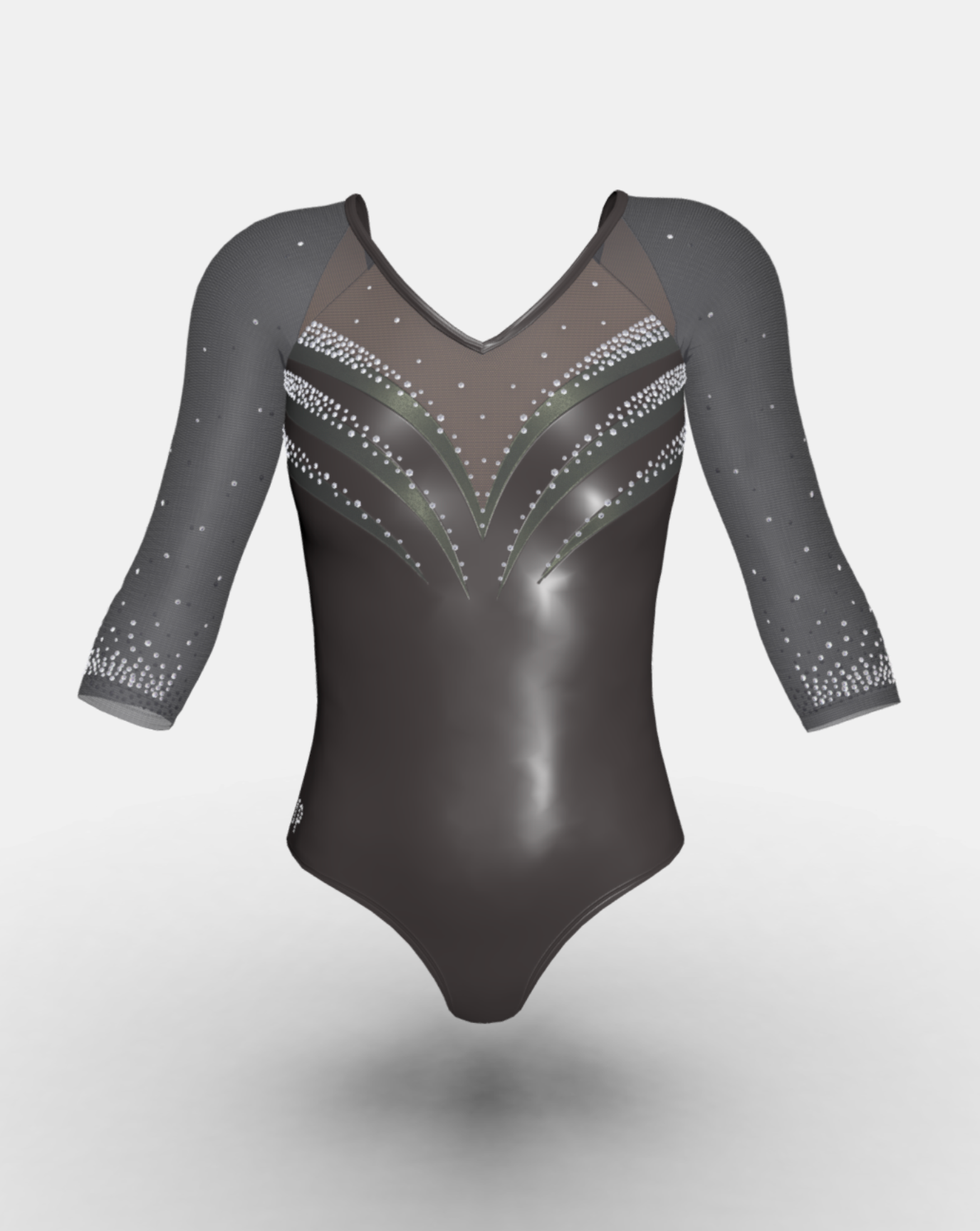 Understated and classic with a twist. The Allegra design has been crafted in our signature V-neckline shape with mystique paneling through the sweetheart bustline. Upper mesh chest panels are skin lined to ensure complete coverage. Dazzling crystals adorn the sleeves and chest to ensure maximum sparkle on the competition floor. The main body has been engineered in a wetlook fabrication that is available in select colours.