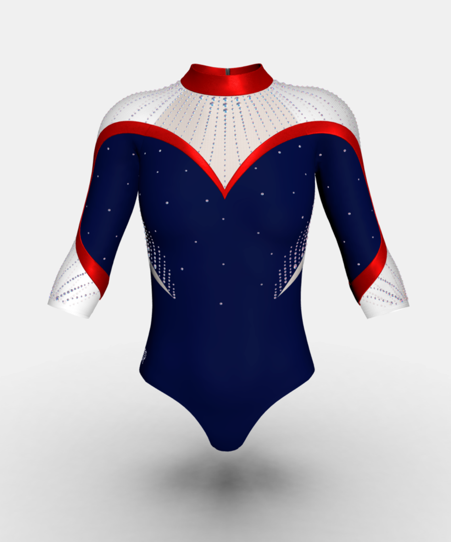 Change the fabrics, colours and crystals of this leotard using StudioSP, our 3D product designer.