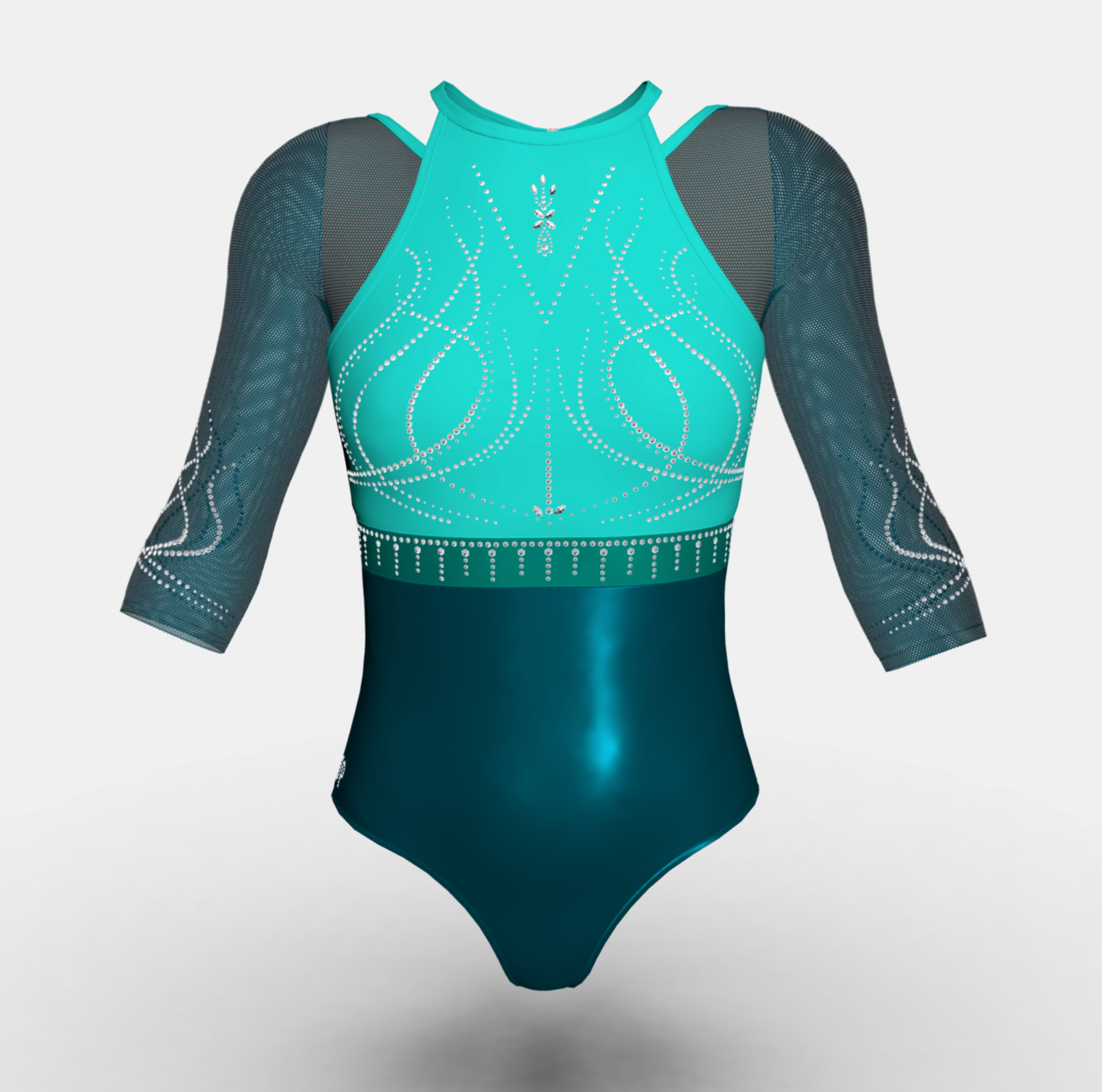 Change the fabrics, colours and crystals of this leotard using StudioSP, our 3D product designer.