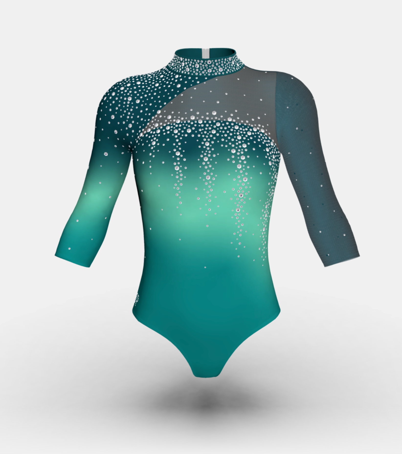 Change the fabrics, colours and crystals of this leotard using StudioSP, our 3D product designer.