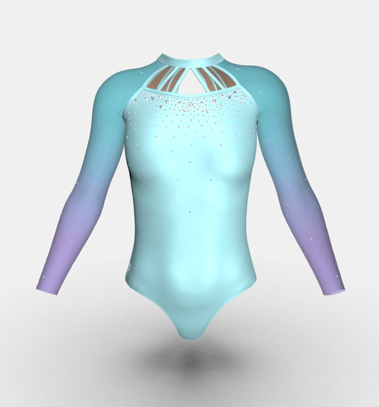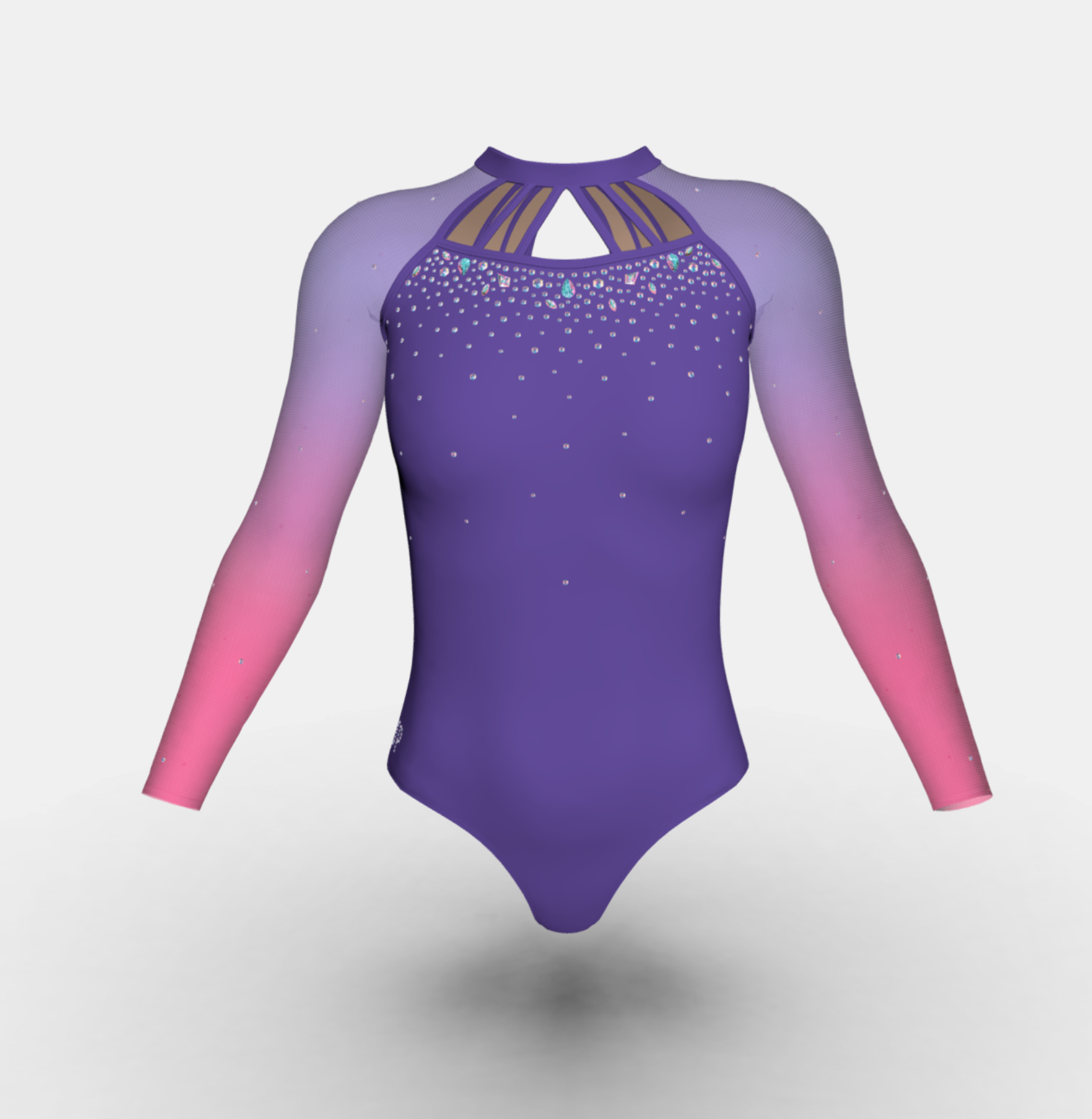Change the fabrics, colours and crystals of this leotard using StudioSP, our 3D product designer.