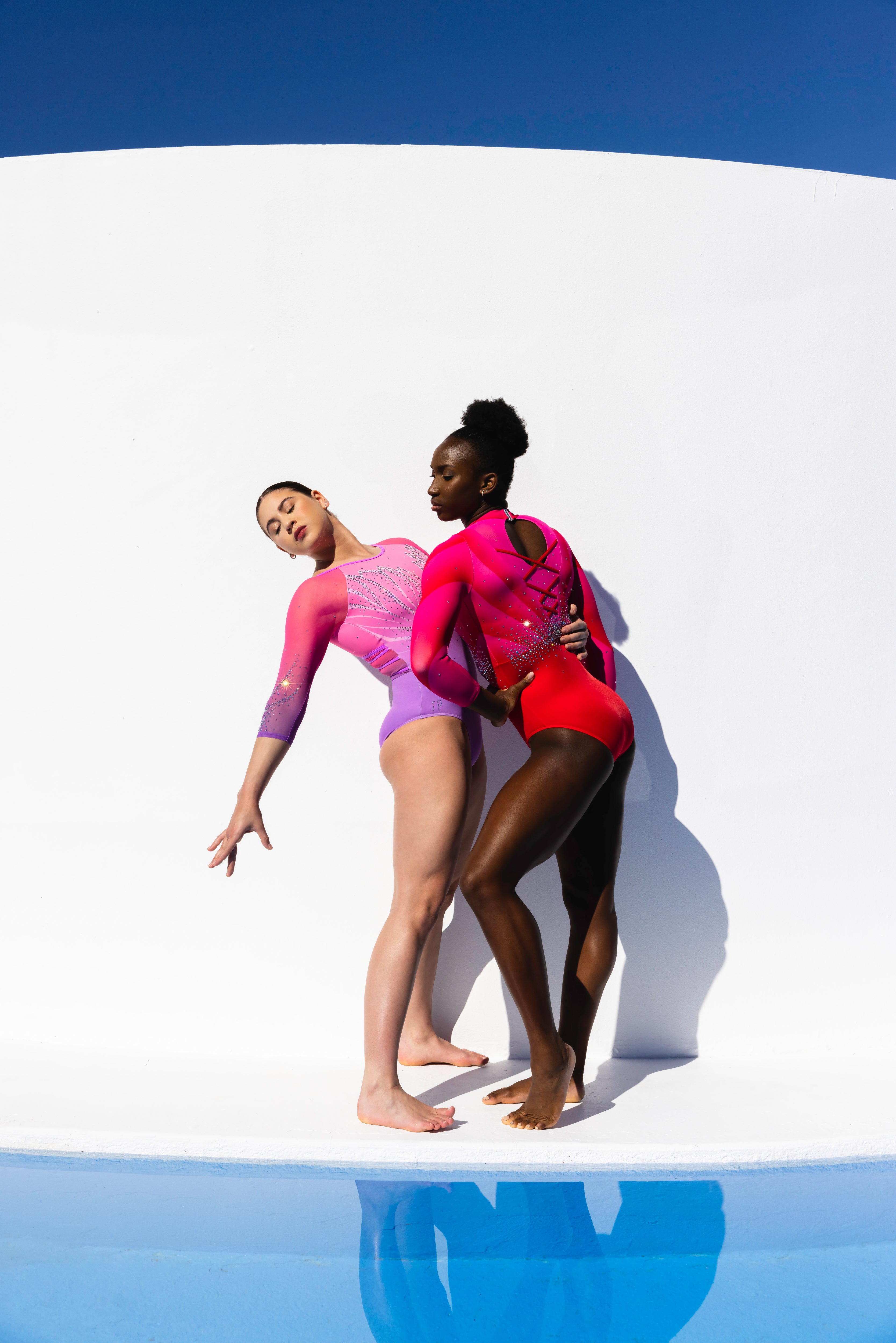 Change the fabrics, colours and crystals of this leotard using StudioSP, our 3D product designer.