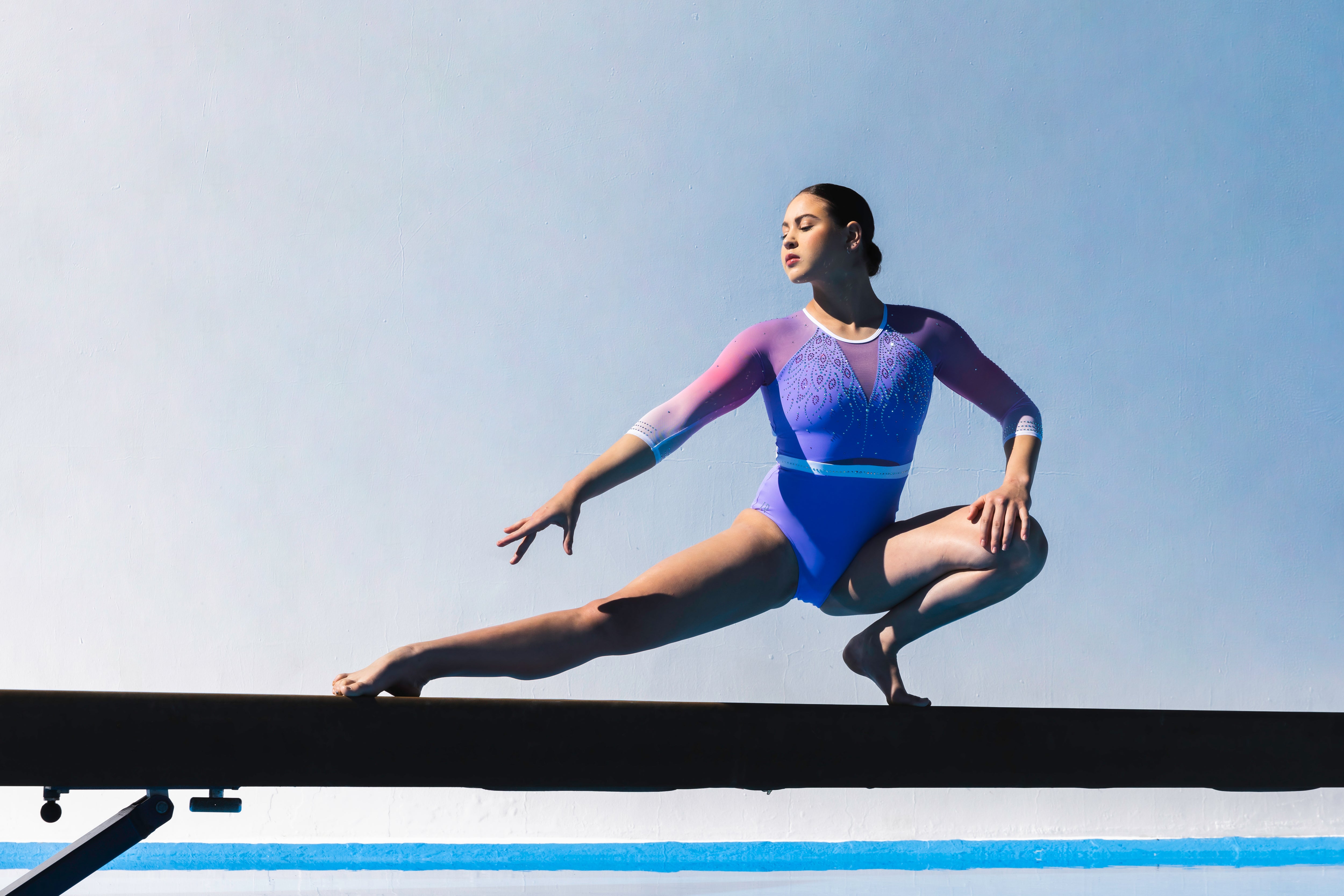 Change the fabrics, colours and crystals of this leotard using StudioSP, our 3D product designer.