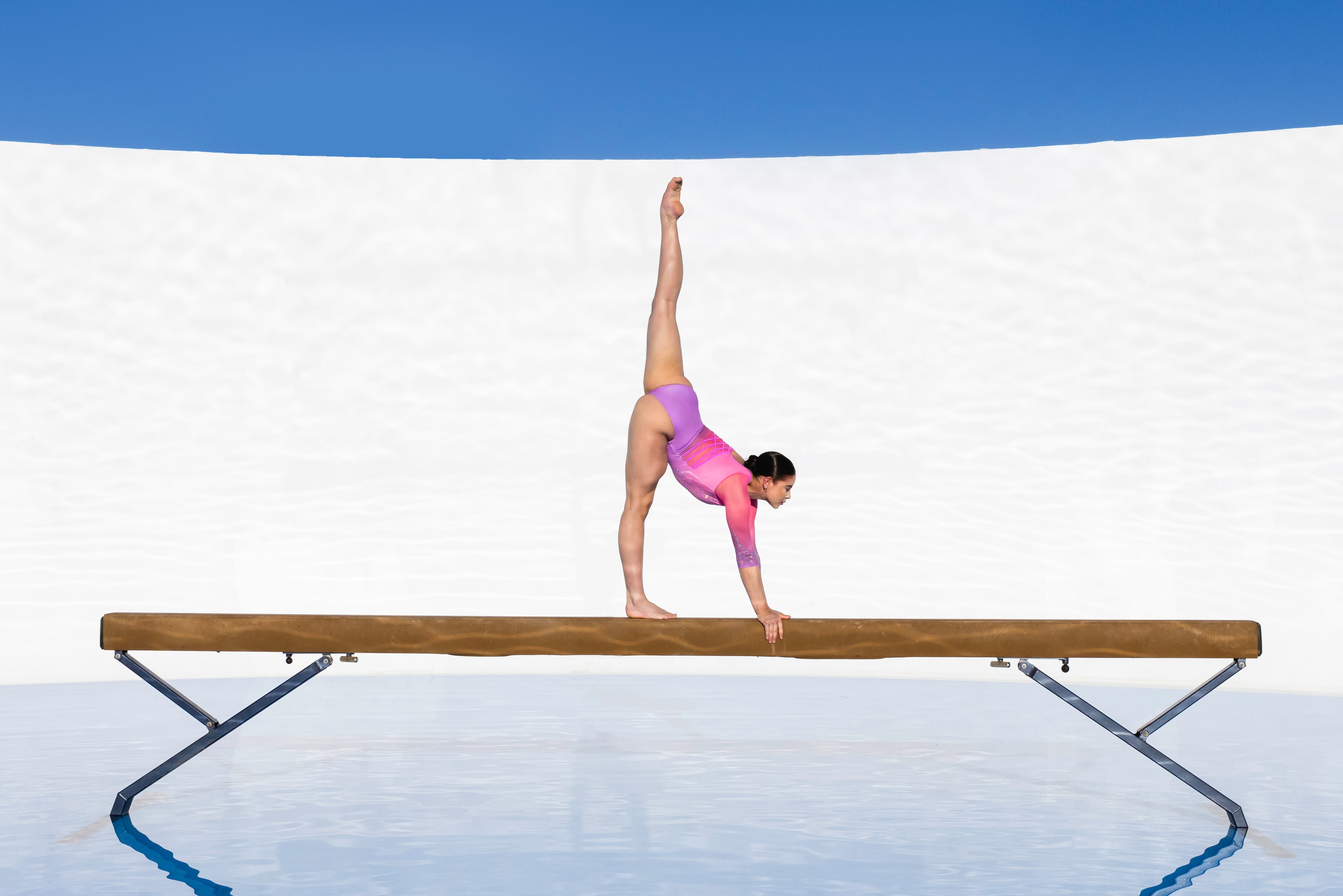 Change the fabrics, colours and crystals of this leotard using StudioSP, our 3D product designer.