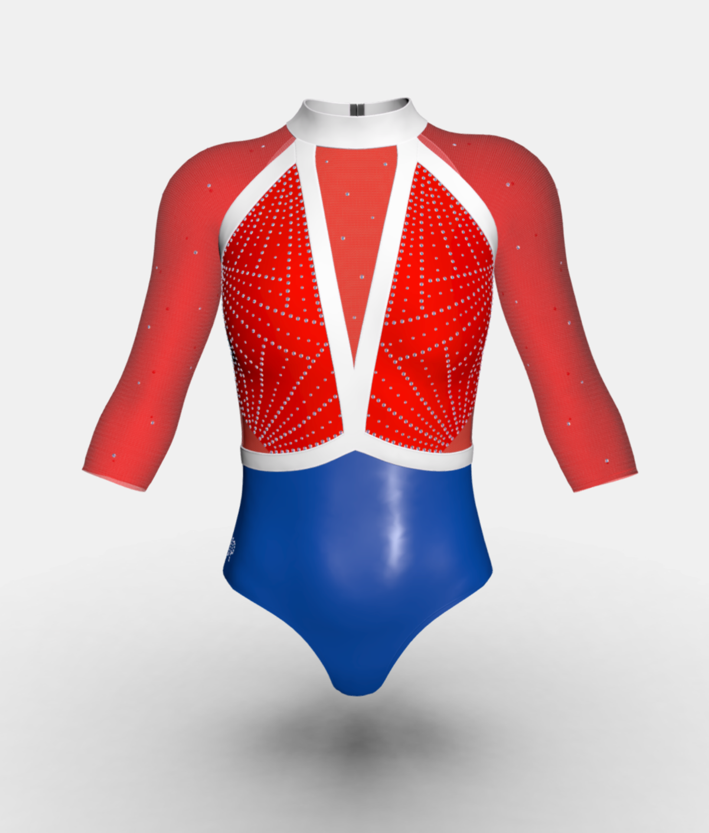 Change the fabrics, colours and crystals of this leotard using StudioSP, our 3D product designer.