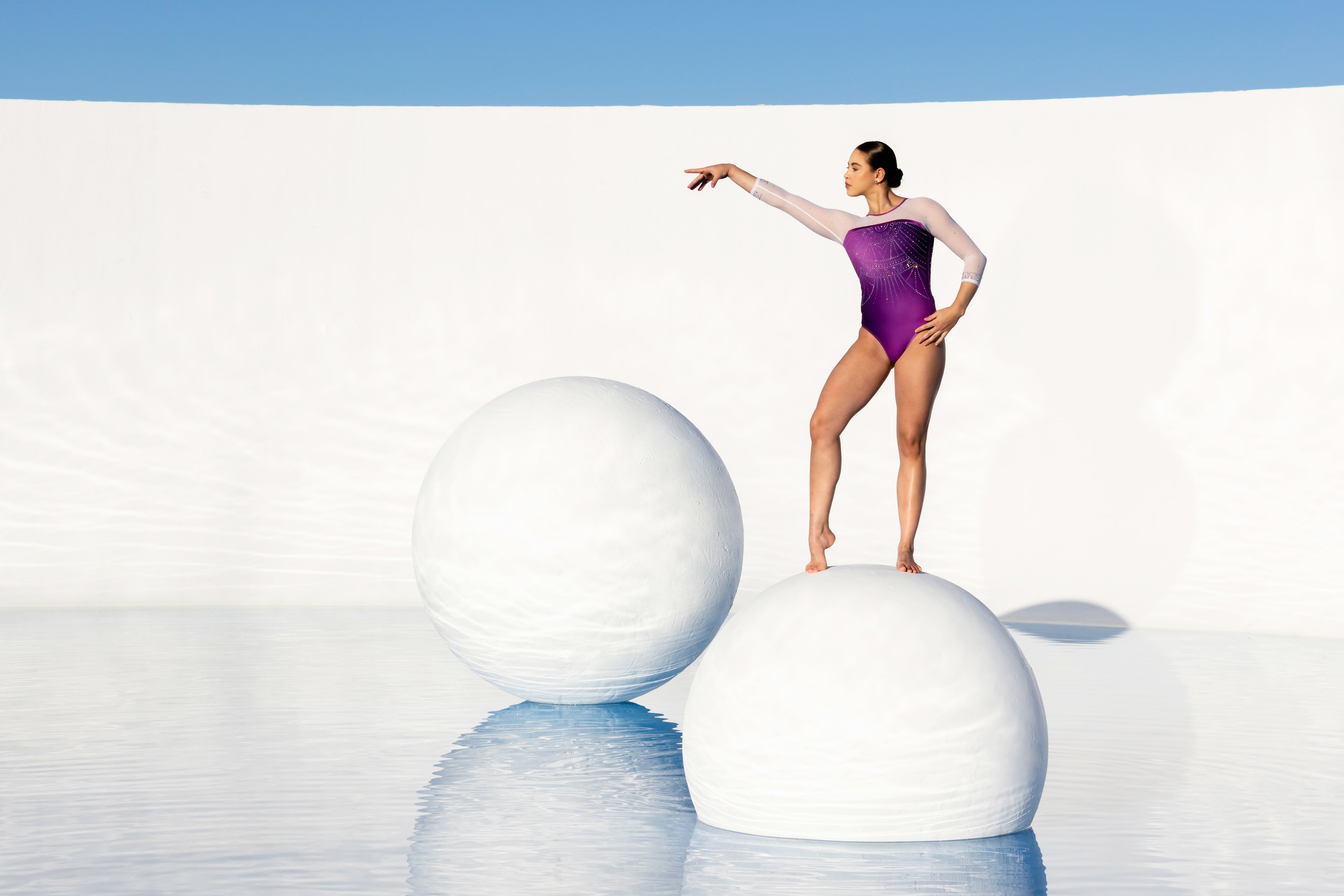 Change the fabrics, colours and crystals of this leotard using StudioSP, our 3D product designer.